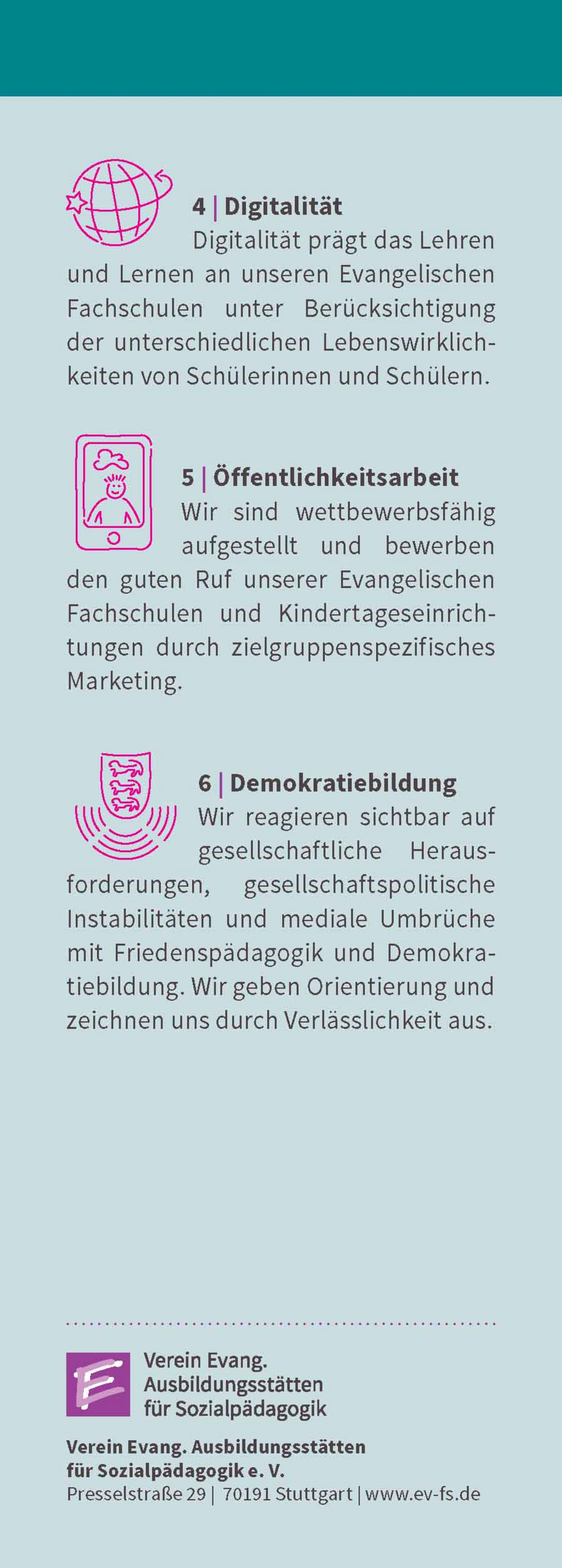 Wir sind wettbewerbsfähig aufgestellt und bewerben den guten Ruf unserer Evangelischen Fachschulen und Kindertageseinrichtungen durch zielgruppenspezifisches Marketing.